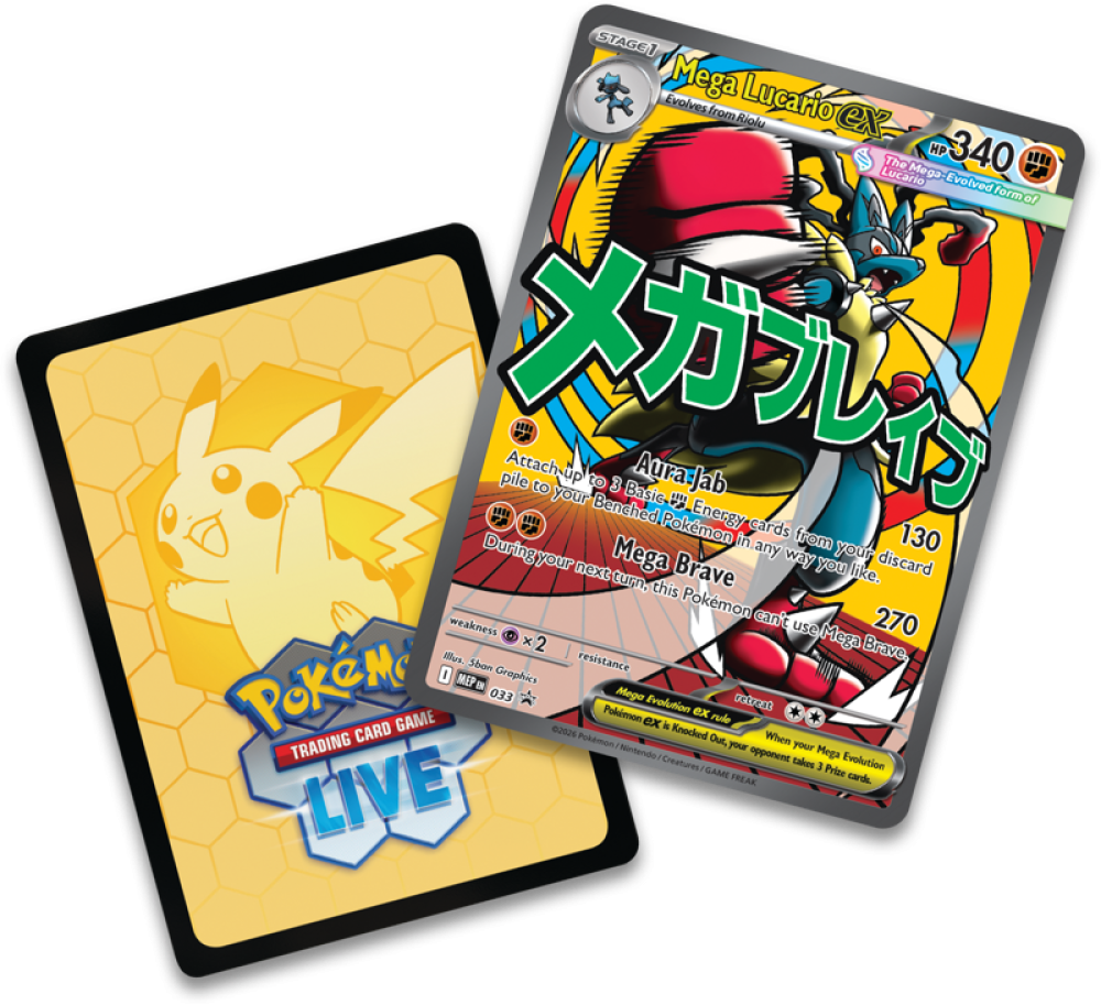 استعد لتجربة استثنائية مع مجموعة البوستر الفاخرة التي تحتفي بالبطل الأسطوري Mega Lucario EX. الإصدار الرسمي بتاريخ 20 مارس 2026 يجمع بين القوة، الفن، والندرة ليكون إضافة مثالية لهواة الجمع وعشاق البوكيمون.