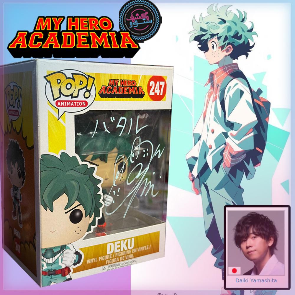 فانكو بوب ديكو، توقيع Daiki Yamashita، JVA توقيع ياباني، JSA COA، مجسمات ماي هيرو أكاديميا موقّعة، Deku Funko Pop، فانكو بوب رقم 247، تواقيع صوتية، كولكشن أنمي نادر، Izuku Midoriya Signed Pop