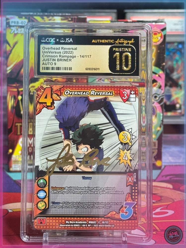 CGC Pristine 10 Deku, Justin Briner Signed, UniVersus My Hero Academia, English Uncommon Card, Deku Voice Actor Autograph, Anime Signed Collectible.