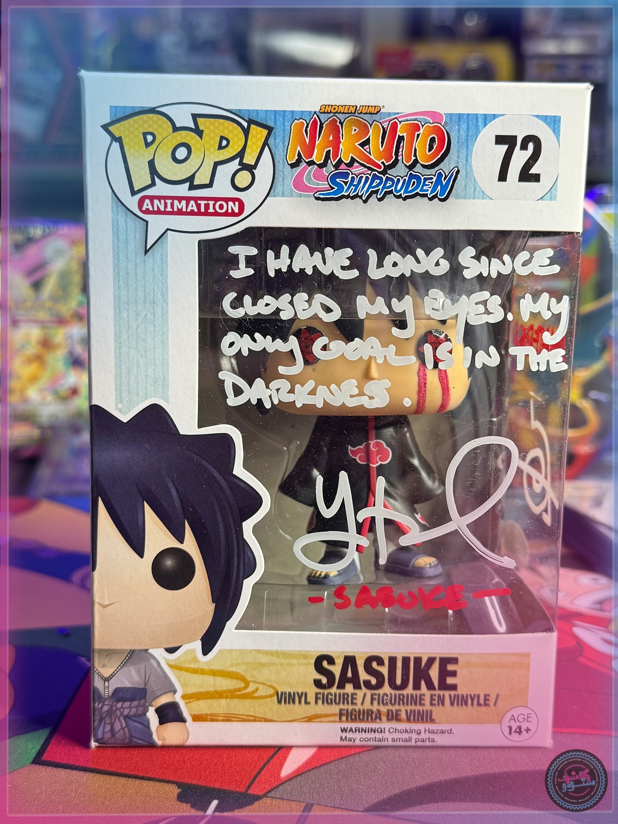 Custom Sasuke Funko POP, Akatsuki Sasuke Custom, Yuri Lowenthal Signed, Naruto Funko POP Custom, Sasuke Quote Autograph, Anime Signed Collectible.