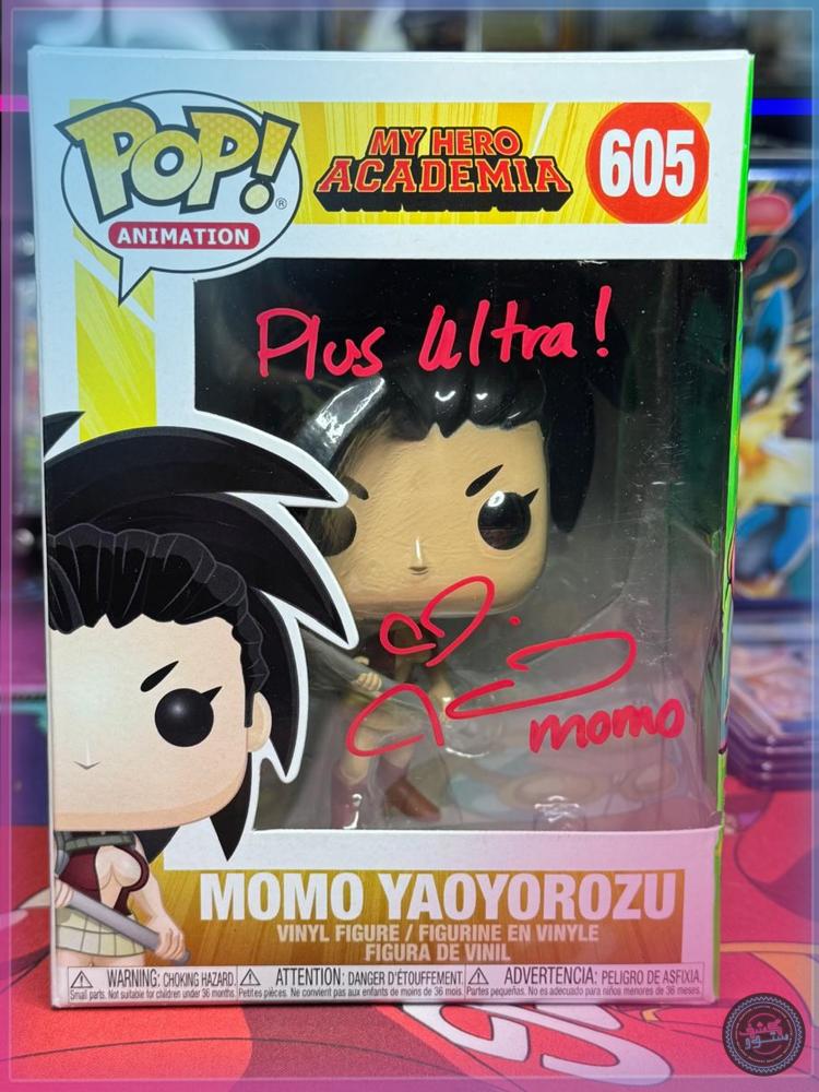 Momo Yaoyorozu Funko Signed, Colleen Clinkenbeard Autograph, JSA Certified Funko, My Hero Academia POP 605, Custom Art Funko POP, Signed Anime Funko.