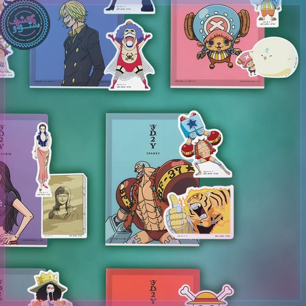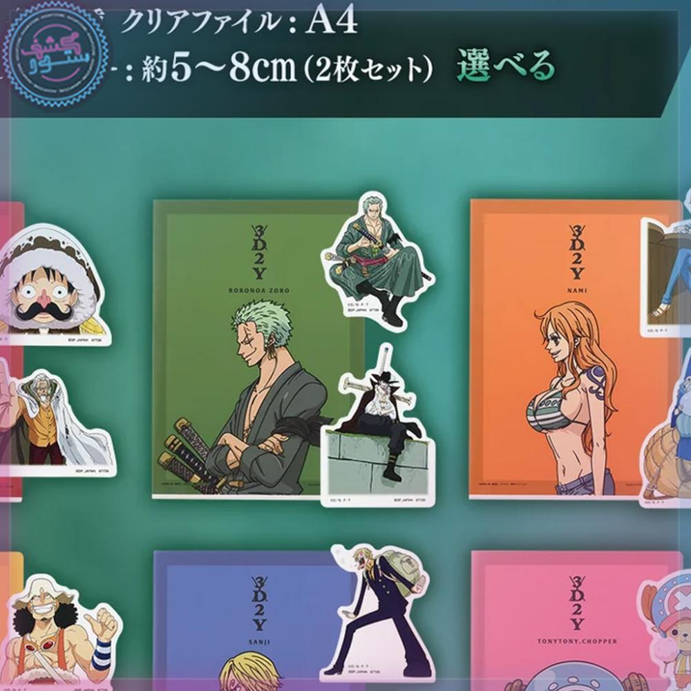 جائزة J تقدم لك **ملف بلاستيكي شفاف وملصق فني أنيق** يجسّدان روح التحديات والانتصارات في رحلة لوفي ورفاقه.