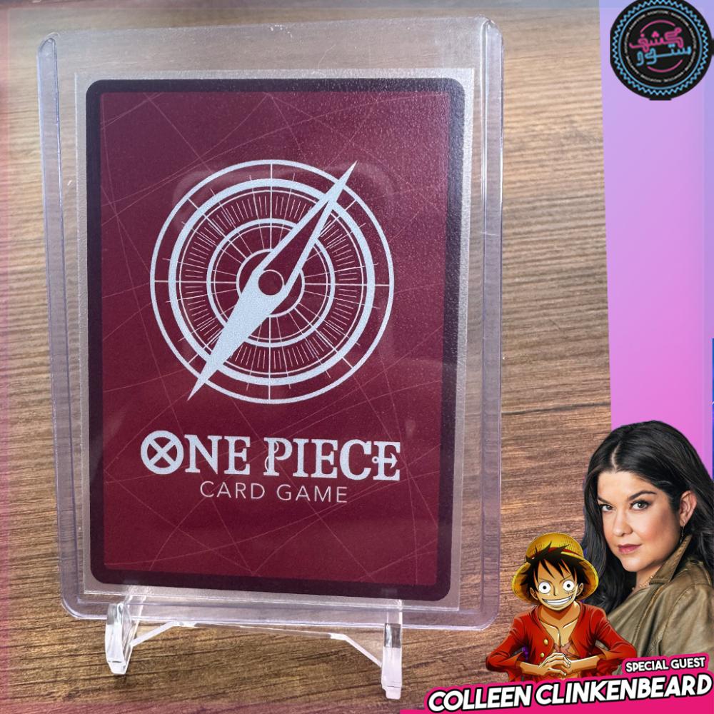 بطاقة Monkey D. Luffy – OP09-061 من توسعة Emperors in the New World ليست مجرد بطاقة لعب، بل قطعة فنية موقّعة من الأسطورة الصوتية Coleen Clinkenbeard، المؤدية الرسمية لصوت لوفي في النسخة الإنجليزية من الأنمي.