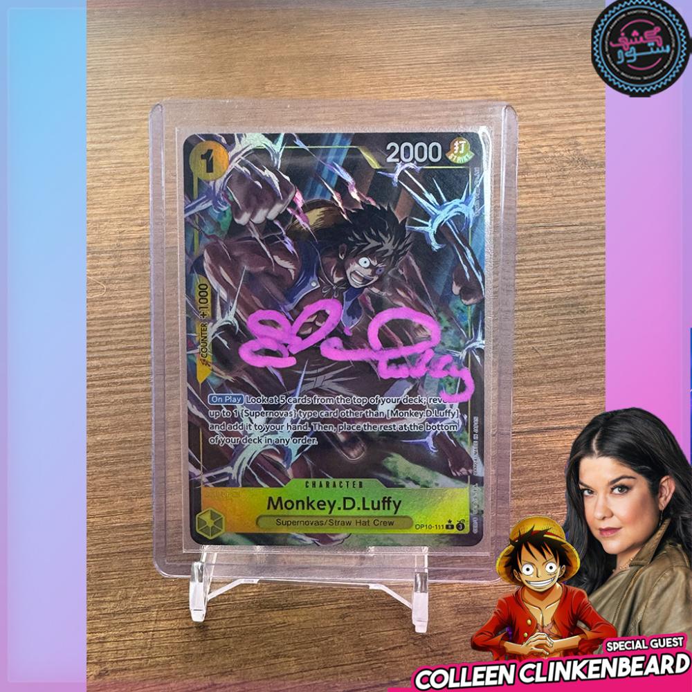 🏴☠️ العنوان:بطاقة One Piece TCG – Monkey D. Luffy OP10-111 Parallel Rare | توسعة Royal Blood | موقّعة من مؤدية الصوت الإنجليزية كولين كلينكينبيرد!