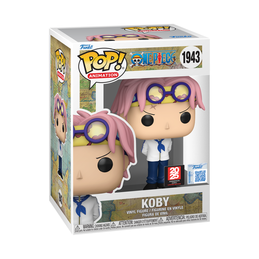 من عالم One Piece، يأتيك هذا الفانكو بوب النادر لشخصية Koby، بإصدار Anime Expo 2025 Shared Exclusive، يحمل الملصق المشترك الرسمي (Shared Sticker) ويتميّز بتصميم يُجسّد مظهره بعد أحداث Enies Lobby وMarineford، حين أصبح ضابطًا في البحرية.