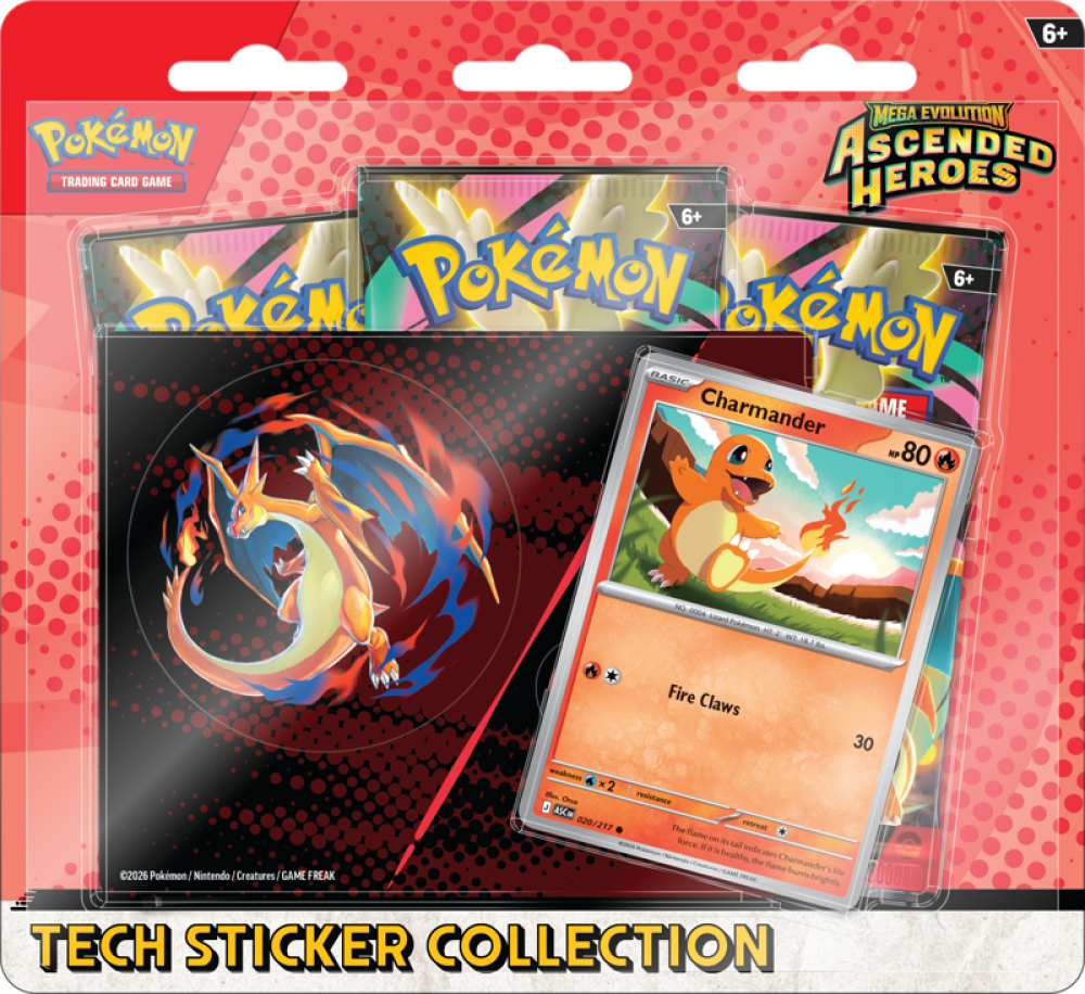 بوكيمون، بطاقات بوكيمون، Pokémon TCG، Mega Evolution، Ascended Heroes، Tech Sticker، Ghastly، Charmander، بطاقات نادرة، منتجات بوكيمون 2026، هواة جمع البوكيمون، ألعاب بطاقات، Pokémon boosters، Promo Card، Code Card، Pokémon collectibles.